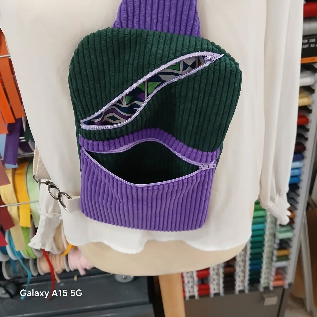 Pochette bandoulière en velours côtelé, pratique et élégante, idéale pour transporter le téléphone, lunettes et petits essentiels.